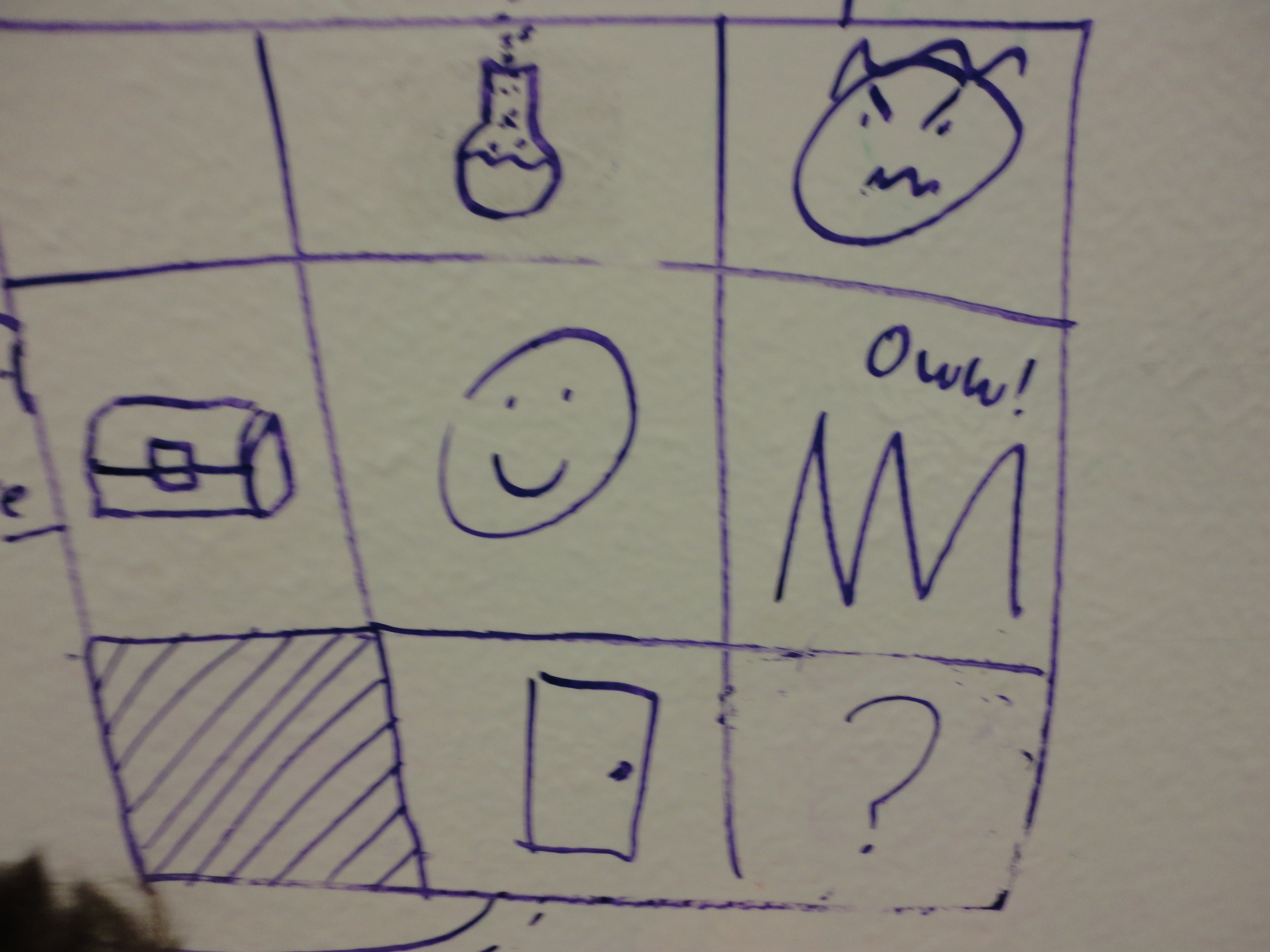 The all nighter was another success. We actually have a procedurally generated level with spawned monsters and chests. We can even move our player around. There was a lot of debate over pathfinding. At first we wanted to make a placeholder pathfinding for this Sprint, but realized we shouldn’t attempt pathfinding at all if we’re going to replace it later with A*. So in the end the player can only move to adjacent squares.