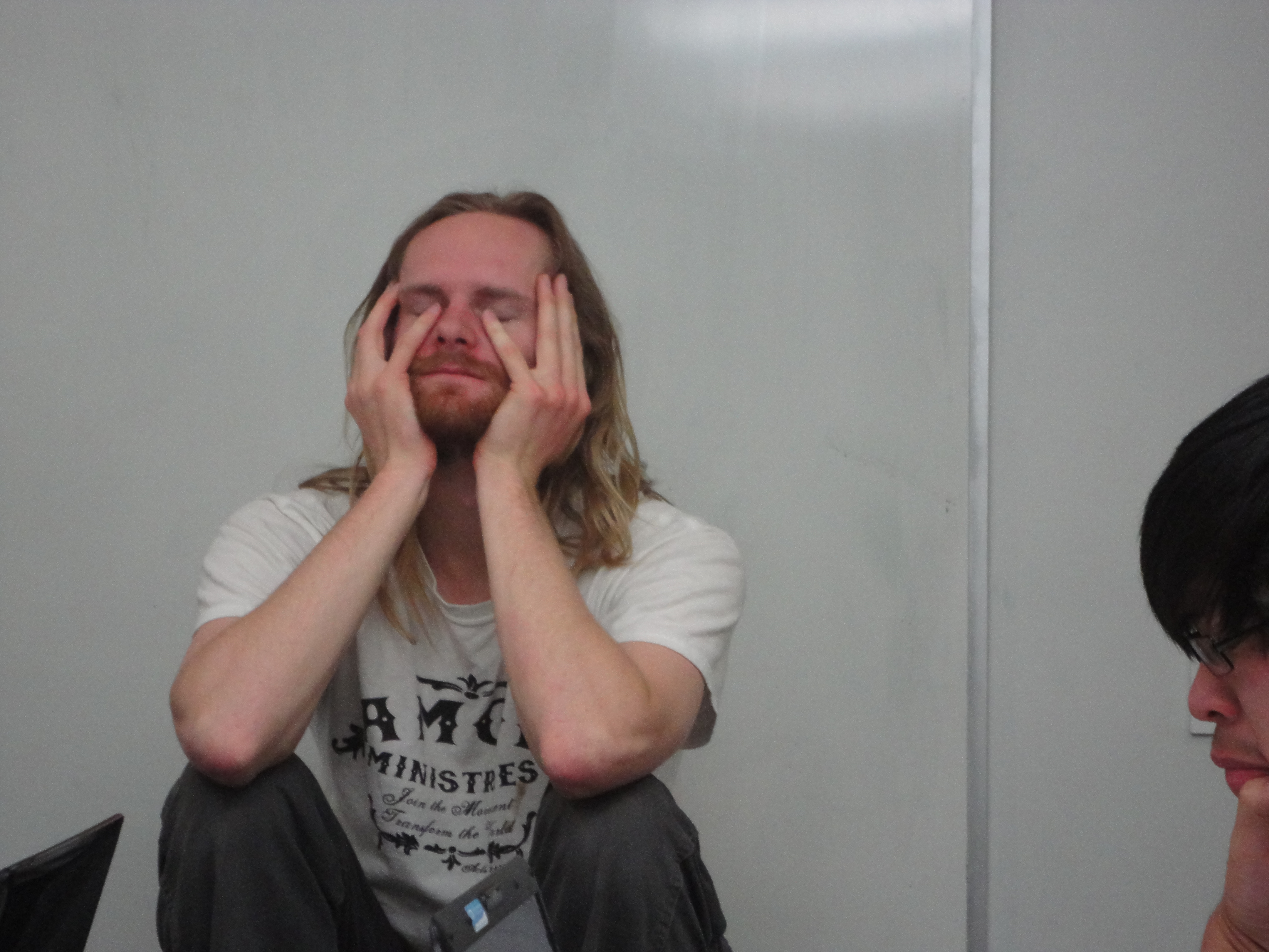 - Dan eventually falls asleep after running from station to station to help everyone with TortoiseHg