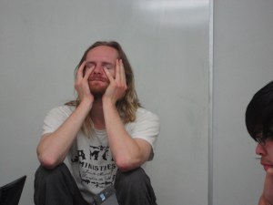 Yeah, that’s the team right there. These are the guys I wish I met three years ago, back when I had little faith that computer science geeks just weren’t my type. Funny thing is I’ve known Chris since middle school, Dan for three years, worked with Kyle last year, and apparently met James and Fletcher back in CS80K. Fletcher actually knocked Reflector (my 80K game) from placing in the finals. James made this hilarious Metal Gear esque game that I still remember giving me smiles until this day. I guess it just goes to show, you don’t really know who you’re going to get along with until you actually give it a good shot.