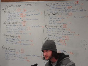 Let’s see, coming into this week we were almost eighty hours off our burndown chart. Not exactly something you want to tell Jim at the end of the Sprint. On top of that since our whole group was in Game AI, we all had Pacman due Thursday. The plan was to finish Pacman Wednesday night and reserve Thursday’s all nighter for Microventures. That was the plan anyway.